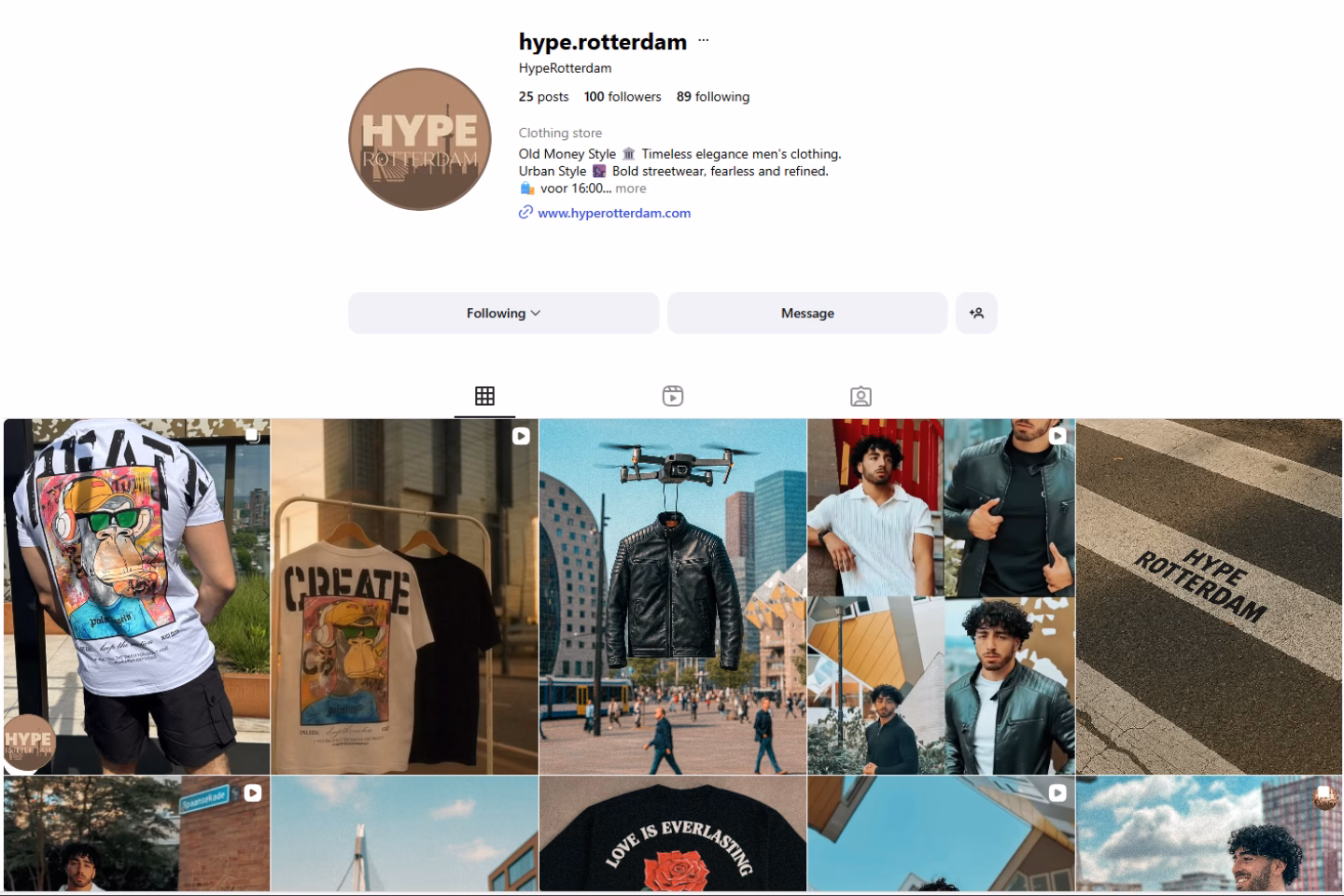 The project culminated in the launch of Hype Rotterdam, a clothing brand with a fully functioning website and a strong presence in the Benelux region, ready to scale and expand further.